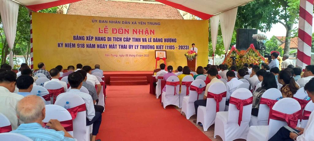 Sáng 6/8, xã Yên Trung đã trọng thể tổ chức Lễ đón nhận Bằng xếp hạng di tích cấp tỉnh và Lễ dâng hương kỷ niệm 918 năm ngày mất Thái úy Lý Thường Kiệt.