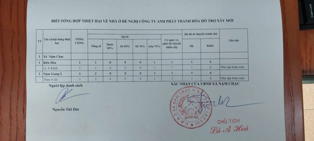 Trên cơ sở danh sách đề nghị của UBND xã Nậm Chạc, huyện Bát Xát, tỉnh Lào Cai, Anh Phát cũng đã hỗ trợ 160 triệu đồng hỗ trợ xây mới 2 căn nhà bị sập hoàn toàn cho gia đình anh Lý A Kênh và anh Thảo A Sứ.